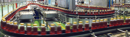 生產線運行效率的高低,與輸送線的配置有很大的關系。在輸送線的配置上須考慮到后段設備短暫停機(例如:更換標簽等)時,對前段設備的運行不能產生影響,同時應該能將前后段的設備良好的銜接在一起,才能使整條生產線達到較高的運行效率。我司的生產線布置充分考慮了客戶投資與生產線使用效率的相互關系,在引進國外技術的基礎上,可以很好的達到上述要求。該系統采用國外先進技術,機械結構為全新設計,多數構件采用沖壓或折彎成形,具有剛性好 、重量輕 、互換性好的優點。傳動方式,運轉可靠,維修方便,適用于輸送直徑φ40~φ110 mm瓶子。無壓力輸送系統,依靠實時速度信號采集和反饋及自動差速控制系統,能夠實現輸送帶上的瓶在運動狀態中由多列平穩變更為單列,而不出現相互擠壓現象。 電氣控制系統采用PLC控制整個實瓶輸送緩沖系統的運行,自動實現運行速度加減速、自動緩沖的功能。